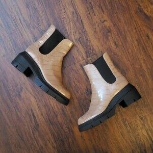 NWT Stuart Weitzman Norah Tan Embossed Leather Block Heel Boot Size 38.5