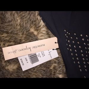Size small. This studded shapewear swimsuit is new with tags marked at $164.00. This piece would look stunning As a swimsuit or bodysuit worn with high waist pants. Quality studs and hardware with a deep scoop back. Double lined to help with tummy control, with padded cups in bra top.
