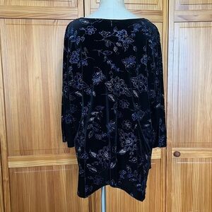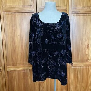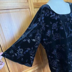 NWT Studio 1940 26/28W Black Velvet Sparkle Floral Bell Sleeve Shirt Holiday