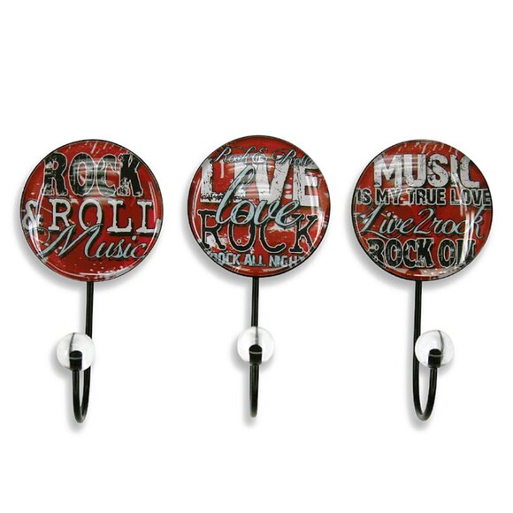 NWT Studio 5 Set of 3 Music Wall Glass Hooks Rock n Roll