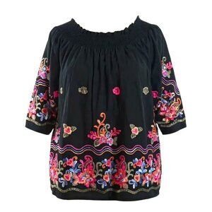 NWT Studio West Top Embroidered Floral Boho Peasant Folk Dark Cottage Black XXL