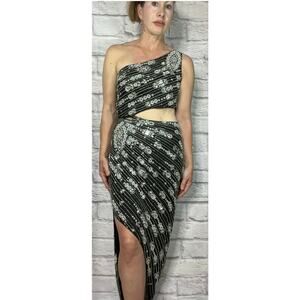 NWT Stunning Mac Duggal Beaded One Shoulder Open Waist Formal/Cocktail Gown