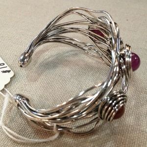 NWT Stunning Silver Tone Cuff Wire Bracelet. Bracelet has multicolor gemstones in the design.