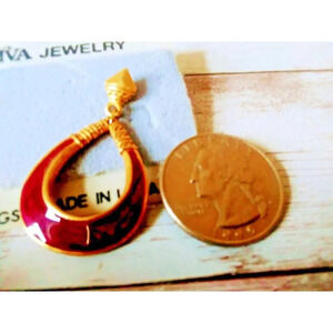 NWT Stunning Vintage 1980s Maroon Red Enamel Drop Earrings