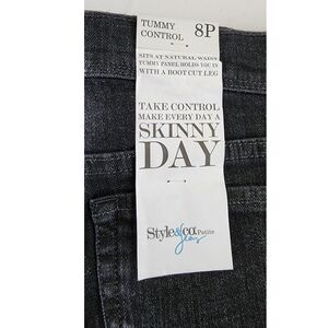 NWT Style & CO Tummy Control Black Tint Boot Cut Jeans Sz 8P. These cute womens jeans have a boot cut leg and built in tummy control. Probably vintage 90's or Y2K.