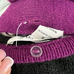 Style & Co beautiful long sleeve black sweater dress with sequins on the purple trimmed neckline and the wide open sleeves. Scarf in black, purple, and gray with sequins. The scarf can be buttoned on to secure or taken off.