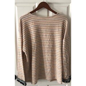 Style & Co. Boho Sweater Womens Peach and Gray Pompom Sleeves Size XXL