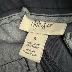 These are really cute chinos in a light version of navy blue. Front side slit pockets and back pockets with cross-stitch details. The inseam as cuffed is 25”. These could be left as long as 29” un-cuffed. Mid rise at around 9.5”. Waist, measured lying flat, is approximately 15.5”.
