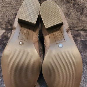 Almond-toe booties with inside and outside zipper entry