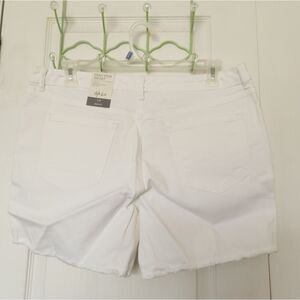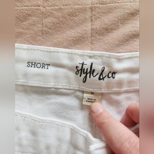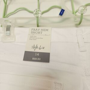 NWT Style and Co size 14 jean shorts. Are midrise. Has fray hem. Has slimming pockets. Has pockets on the front and back.