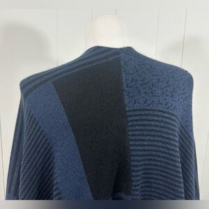 NWT Style & Co Womens Blue Knit Striped Fringe Poncho Size L/ XL