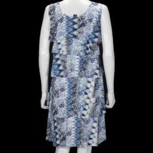 NWT Style&Co. Blue White Print Ruffled Layered Shift Dress, Medium