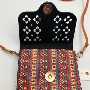 NWT Styline Leather Small Crossbody Bag - Cell Phone Bag - Aztec print 2 tassles