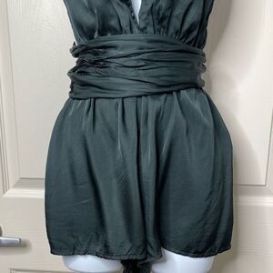 NWT Subdued Deep V Neck Wrap Around Romper (London Green) - 4
