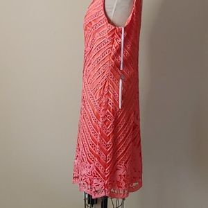 NEW Sue Wong short formal dress in Size 10 and Size 14 in persimmon color. The dress has a V-Neck front and back and is embellished with delicate ribbons.