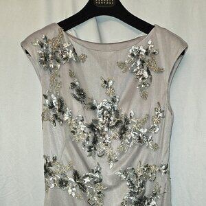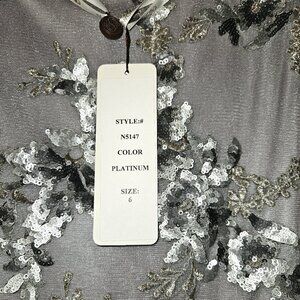 NWT Sue Wong Nocturne Y2K platinum/silver sequined/embroidered dress sz 6