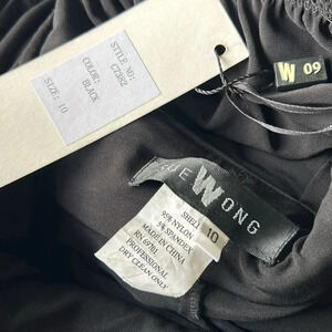 NWT Sue Wong v neck cocktail dress black ruched long sleeve open back Size 10