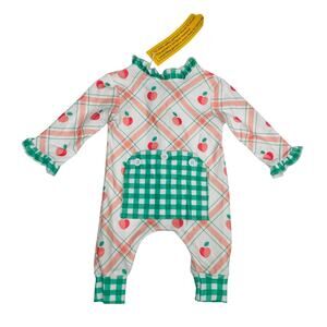 #sugarbeeclothing #ruffles #romper #sleepwear #pjs #pajamas #fruit #peaches #orange #pink #green #gingham #plaid #new #nwt #giftit