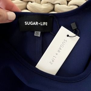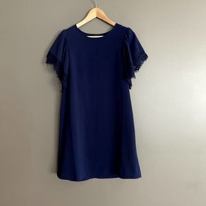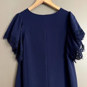 NWT Sugar + Lips Camilia Crochet Trim Dress Navy Blue Size XS Lace Sleeve Shift