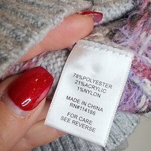 Macy's Sugar Moon Juniors' NYC Alliance Fair Isle Sweater. Grey Pink Purple