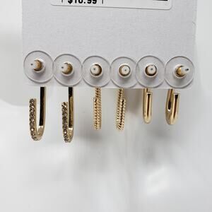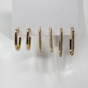 Gold-Tone 3 Pack Oblong Hoop Post Earring