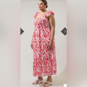 NWT Sugarlips Curve Floral Red and White Maxi Dress Size 3X Tropical Vacation