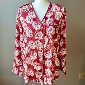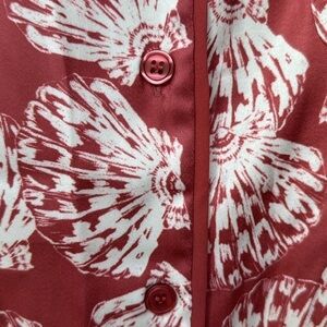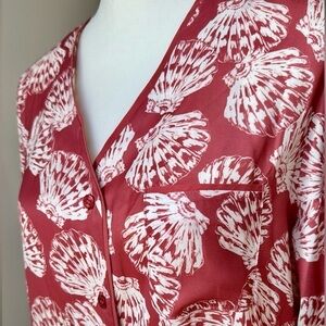 NWT Summersalt Cloud 9 Satin PJ top Long Sleeves Burgundy Seashell Print Medium