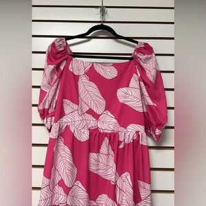 NWT Sun Dress Tropical Print Pink/White Sz XL Short Sleeve