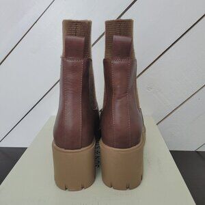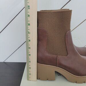 NWT Sun + Stone SS Verity Chunky Heel Brown Ankle Chelsea Boots 10M Women's