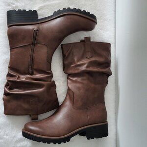 NWT Sun+Stone Nellieep Lug Brown Women's Slouch Platform Pull-On Boots Size 11