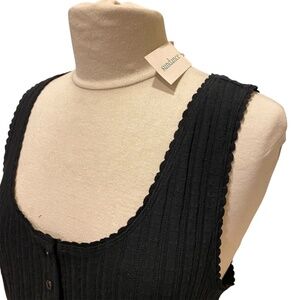 NWT Sundance Essential Rib-Knit Tank Top Tunic Length Scallop Edges Black XL