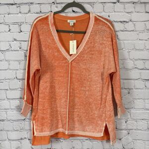 NWT Sundance Johanna Cotton V-Neck Pullover Sweater Women's XS in Burnout Orange.