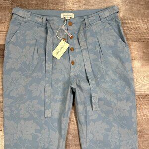 NWT Sundance Womens Sz 10 Bastille Easy Pants Blue Floral Button Fly Tie