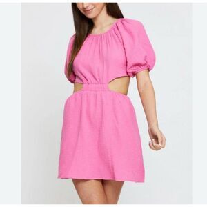 NWT Sundays Dress Womens Small Pink Mini Textured Open Back Short Puff Sleeve gauze gauzy cotton short