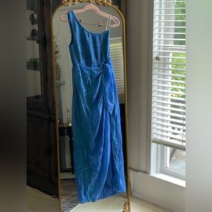 Blue One-Shoulder Metallic Dress