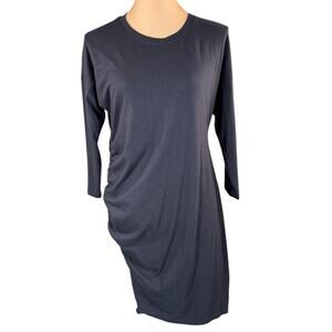 Sundry Anthropologie blackdress teedress minidress casualdress 3/4sleeve ruchedside cottonspandex stretchmaterial comfortdress daytimestyle weekendwear versatile contemporary modern chic effortless easycare casualchic loungewear everyday basicwardrobe essentialpiece