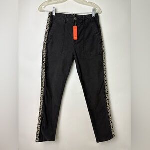 NWT Sundry Black Cheetah Trim Utility Slim Straight Pants