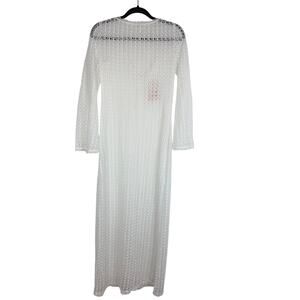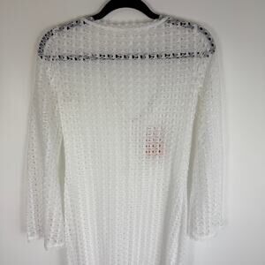 NWT Sunfere Womens Long Sleeve Open Knit Crochet Swimsuit White Cover-Up Dress