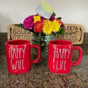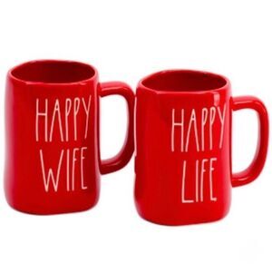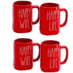NWT Super Rare Rae Dun Happy Wife Happy Life 4 Pcs Red Mug Glossy Finish Set New