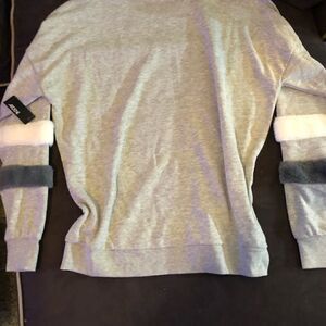 NWT Super soft gray and white sweatshirt with fur trim sleeves.