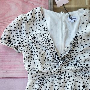 NWT Superdown Black/White Star Print Twist Bust A-line Mini Dress Small