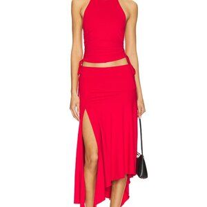 NWT Superdown Jaqualina Vibrant Red Asymmetrical Midi Skirt S Statement Skirt