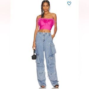 NWT Superdown Ramona Bustier Top Pink Feathers XS Revolve