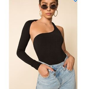 NWT Superdown alessandra bodysuit black one shoulder stretch cut out Revolve S