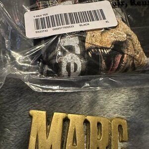 Predominantly black, the Supreme T-Rex Tee provides a versatile canvas for the striking printed design. Crafted entirely from 100% cotton, it ensures both comfort and enduring quality. The front graphic portrays a T-rex dramatically traversing New York City, accompanied by the iconic Supreme logo in the corner, for some brand recognition. The tee retains its casual aesthetic through its short sleeves, ribbed crew neck, and straight hem.