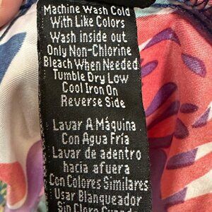 Surf Society Tropical Skulls Swim Shirt. Bold and colorful neon sign print. Button front closure. Collared neckline. Short sleeves. Breathable hidden mesh panel at back.