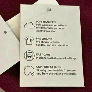 Very comfortable and warm for chilly fall weather. Machine Washable. Never worn, new with tags. Pre-Shrunk. Versatile. Comfort Styling.