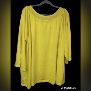 NWT Susan Graver 3X yellow sweater 3/4 sleeves pockets plus size preppy spring
