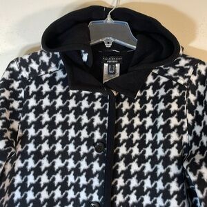 NWT. Susan Graver Weekend Houndstooth Reversible Sherpa Fleece Hooded Coat. XS