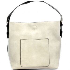 Indulge in the timeless allure of a classic hobo, a perennial favorite that seamlessly marries vintage charm with contemporary flair. Each bag boasts a rich color accentuated by neutral straps. Experience the convenience of two bags in one with this versatile design. The spacious main bag, adorned with a generous front pocket, offers ample room for all your essentials. A snap-in removable bag with a crossbody strap adds an extra layer of functionality. Crafted with care by Joy Susan, these handbags epitomize ethical elegance. Constructed from “Vegan Leather”, they exude the same opulent appearance and luxurious feel as traditional leather, all while upholding a commitment to compassion and sustainability.